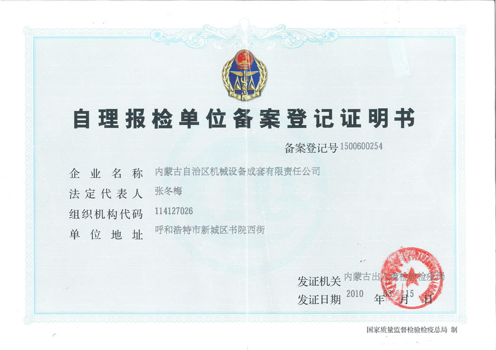 自理報檢單位備案登記證明書