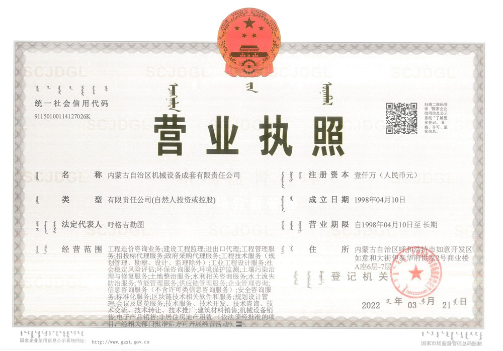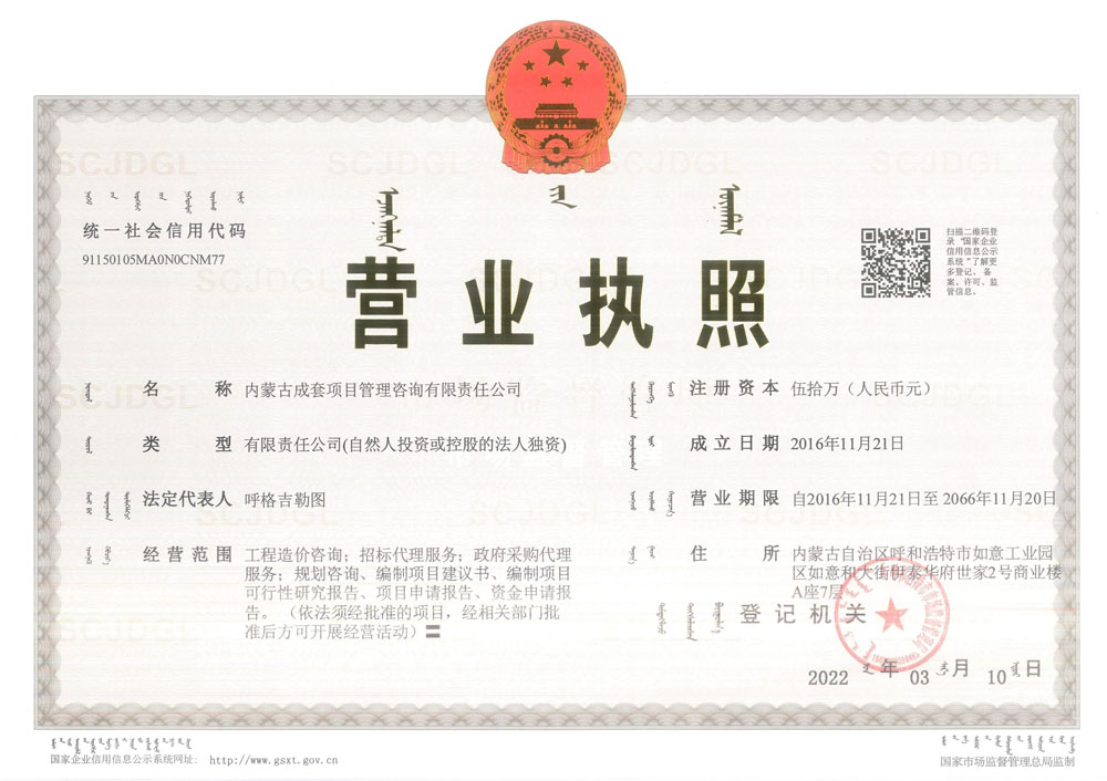 內(nèi)蒙古成套項(xiàng)目管理咨詢有限責(zé)任公司營業(yè)執(zhí)照